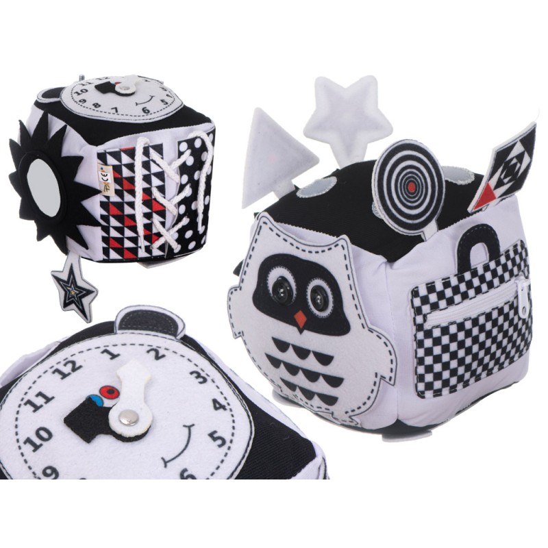 Zawieszka w kształcie miękkiej kostki w kontrastowych wzorach to doskonała propozycja dla maluchów dopiero poznających świat. Przemieni każdą zabawę w magiczną przygodę.