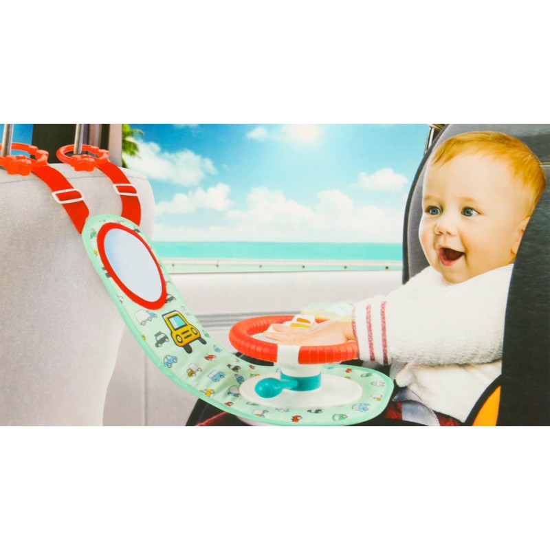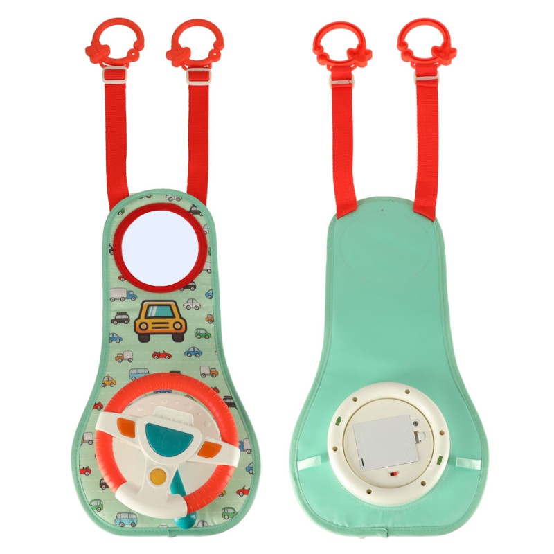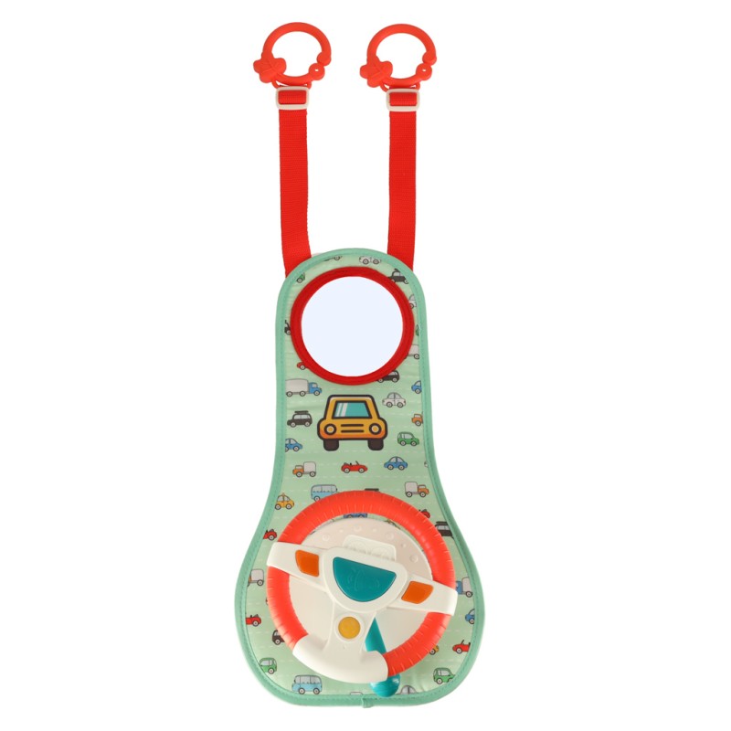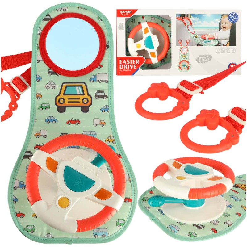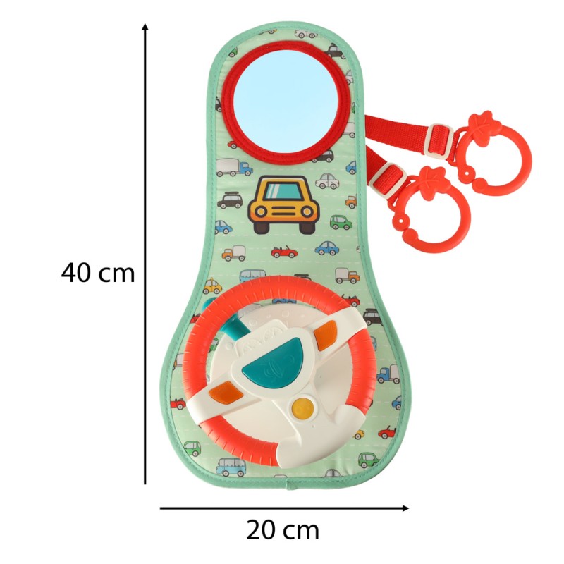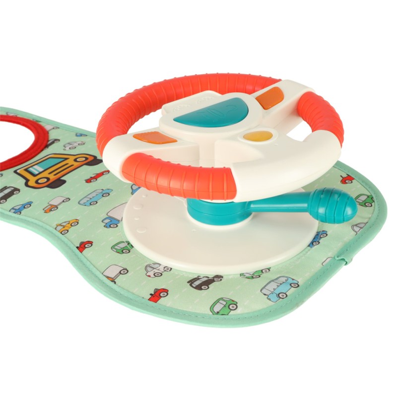 Składa się z kierownicy z 4 przyciskami i sensoryczną manetką oraz plastikowego, bezpiecznego lusterka. Elementy zostały umieszczone na sztywnej podkładce pokrytej przyjemnym materiałem z motywem samochodzików.