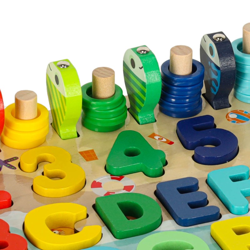 SORTER EDUKACYJNY DREWNIANY + GRA ŁOWIENIE RYBEK + LICZYDŁO 3w1