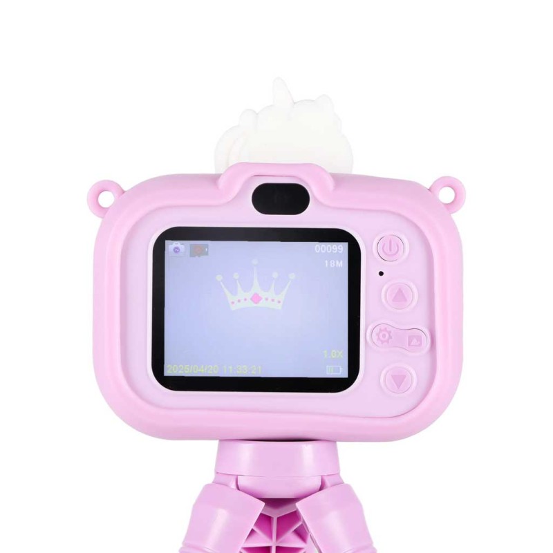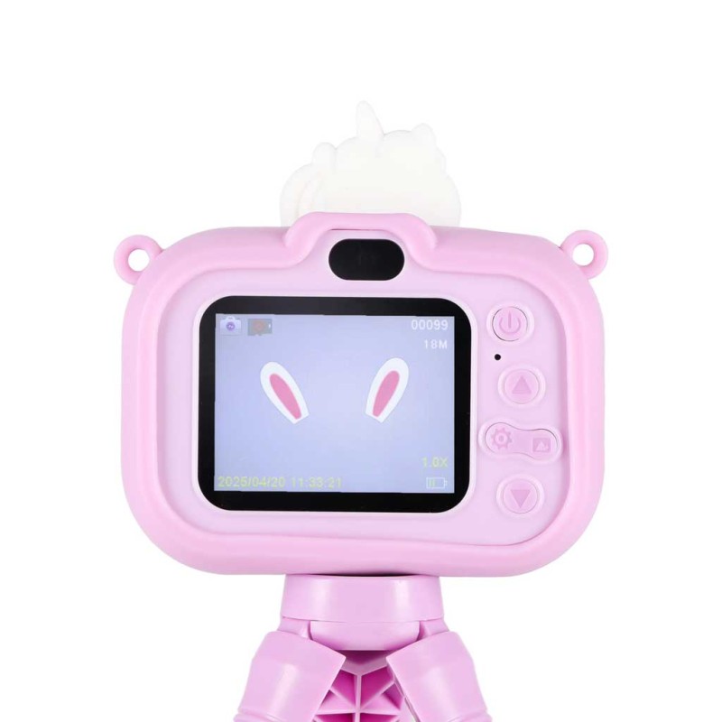 Gdy zaczyna się nagrywanie, robi się serio… albo totalnie zabawnie. Rozdzielczość wideo w jakości 1080P sprawia, że filmiki są wyraźne, dynamiczne i pełne szczegółów. Ten aparat w kształcie jednorożca na statywie pozwala tworzyć własne mini vlogi, scenki i krótkie historie - takie, które chce się oglądać jeszcze raz, i jeszcze raz. Efekt? Dziecko nie tylko rejestruje chwile, ale też je tworzy: z pomysłem, dumą i ogromną radością. Urządzenie nie ma własnej pamięci wewnętrznej, dlatego po jego ponownym włączeniu wykonane wcześniej zdjęcia zostają usunięte. Jeśli chcesz zachować fotografie, konieczne jest włożenie karty TF (microSD).