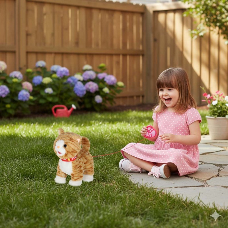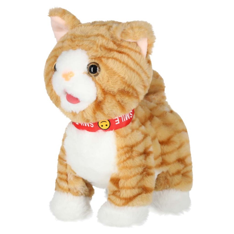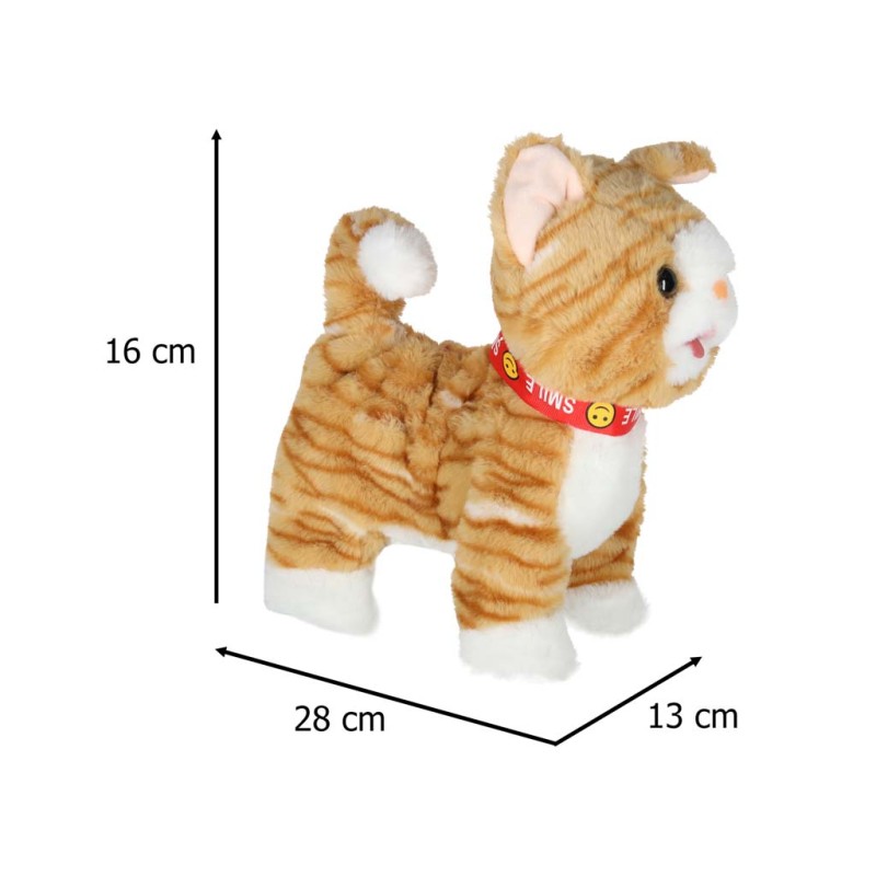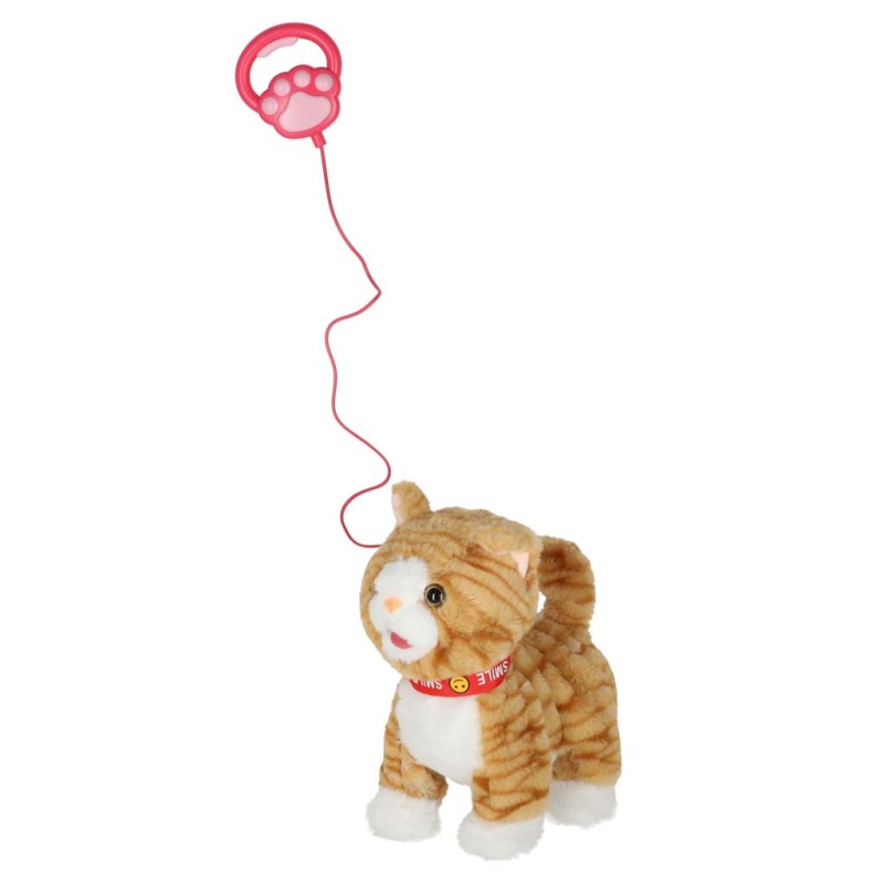 Interaktywny kotek na smyczy będzie pluszowym towarzyszem zabaw Twojego dziecka. Działa na baterie AA – po ich włożeniu kotek jest gotowy na spacer! Włącznik umieszczony na smyczy sprawi, że kotek ruszy do przodu w rytm wesołej piosenki. Kotka można również pogłaskać – zwierzątko zareaguje miauczeniem i ocieraniem się.