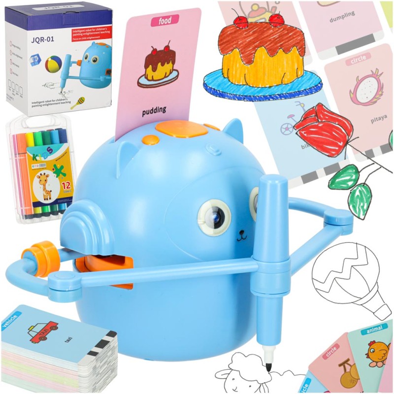 Ten wyjątkowy robot edukacyjny to więcej niż urządzenie - to kreatywny nauczyciel, przewodnik po świecie sztuki i języka, a jednocześnie doskonały sposób na naukę przez zabawę. Wystarczy wsunąć kartę z obrazkiem, umieścić mazak w ramieniu robota i obserwować, jak powstaje rysunek. Potem dziecko może precyzyjnie pokolorować ilustrację, rozwijając przy tym zdolności manualne i cierpliwość.