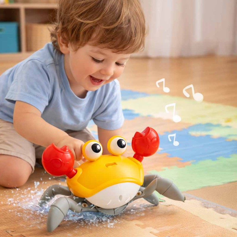 Pełzający krab to dynamiczna interaktywna zabawka dla dzieci, która zamienia podłogę w strefę odkryć. Uciekający krab porusza się, skręca i reaguje na otoczenie. Automatyczna zmiana kierunku ruchu, czujnik interaktywny oraz omijanie przeszkód sprawiają, że uciekający krab nieustannie zaskakuje. Zabawka potrafi odtwarzać muzykę i oferuje angażujące funkcje, które urozmaicają codzienną aktywność.