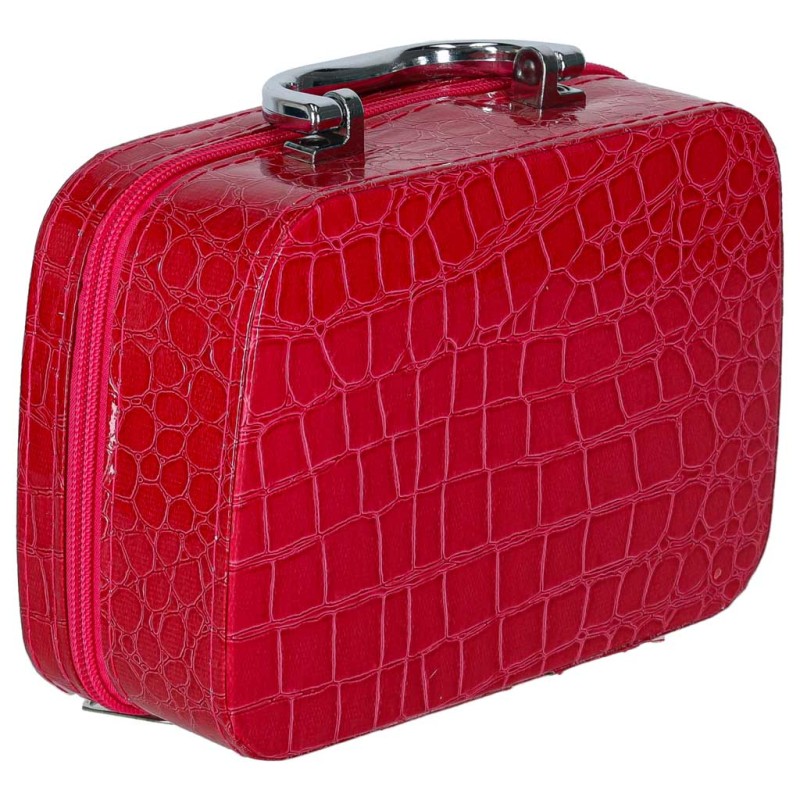 Kuferek z kosmetykami do makijażu dla dzieci 3+: plastik akrylowy, aluminiowe obramowanie, wymiary 22×18×16,5 cm. Zawiera szminki, cienie, lakiery, akcesoria do manicure i lusterko. Kosmetyki zmywalne wodą, nietoksyczne, bezpieczne dla dzieci.