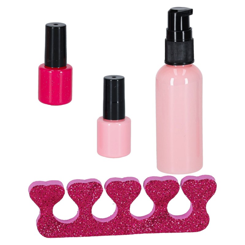 Dodatkową atrakcją jest zestaw do stylizacji paznokci, który pozwala tworzyć kolorowy manicure i pedicure w całkowicie bezpieczny sposób. Każdy lakier to realistyczna imitacja, dzięki czemu zabawa wygląda jak prawdziwa, ale nie brudzi i nie pozostawia śladów - cały efekt rozgrywa się w świecie wyobraźni.