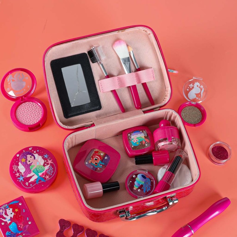 Ten kuferek z kosmetykami do makijażu to idealny zestaw dla każdej dziewczynki, która lubi błysk, kolory i kreatywną zabawę. Bezpieczny, piękny i pełen uroku - pozwala małej damie odkrywać świat stylizacji w jej własnym tempie.