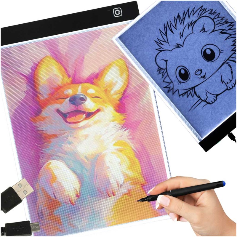 Równomierne i bezpieczne dla wzroku podświetlenie LED gwarantuje komfort i bezpieczeństwo nawet podczas długich godzin pracy. Wytrzymała, lekka i cienka konstrukcja pozwala zabrać deskę ze sobą wszędzie – do szkoły, biblioteki, kawiarni, a nawet w plener! Zasilanie USB zapewniają swobodę tworzenia bez względu na miejsce.