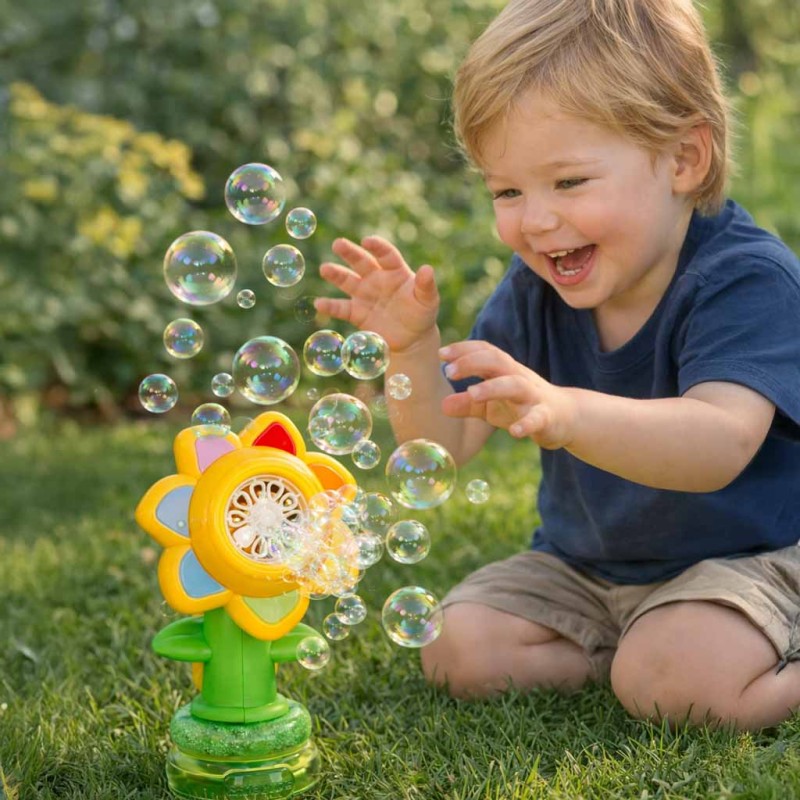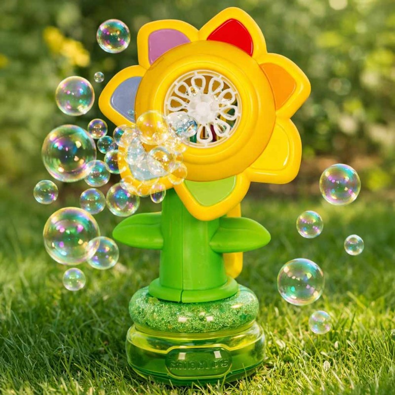 • Magiczny automat do baniek mydlanych w kształcie kwiatka - zachwyca oryginalnym designem. Urocza forma sprawia, że zabawka jest pełna wdzięku i od razu kojarzy się z zabawą, lekkością oraz radością dzieciństwa