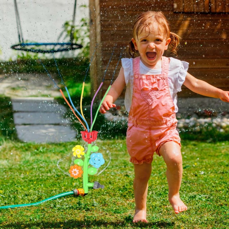 Kolorowy zraszacz wodny w kształcie kwiatka, który perfekcyjnie ochłodzi każdego w gorące letnie dni. Po podłączeniu kwiatka do wody, kolorowe rurki zaczną tańczyć i z pewnością zachęcą dzieci do zabawy na podwórku. Wymiary: 28x17x5cm.