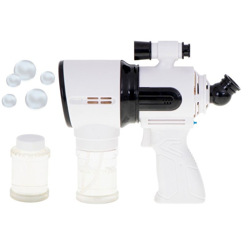 Kosmiczny pistolet strzelający bańkami przypominający lunetę przeniesie dziecko w magiczny świat niekończącej się zabawy.