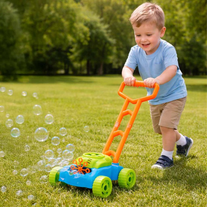 Bąbelkowa maszyna w formie pchacza do złudzenia przypominającego prawdziwą kosiarkę skradnie serce każdego malucha.
