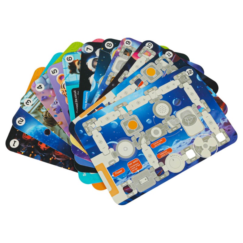 Z tym zestawem naukowym każde dziecko odkryje, jak powstaje prąd i jak łączyć elementy elektroniczne w bezpieczny, prosty sposób. 12 kart z różnymi projektami prowadzi krok po kroku przez podstawy działania prądu i zasady łączenia elementów. To idealny sposób na rozwijanie logicznego myślenia i kreatywności!