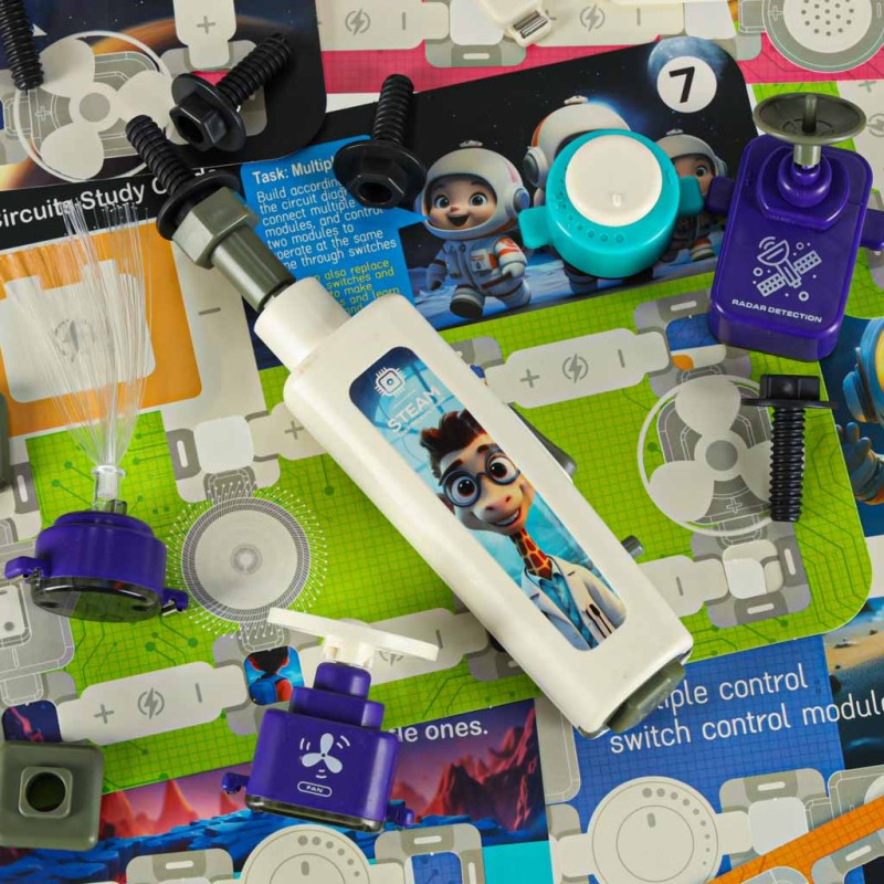Wystarczy prawidłowo podłączyć ze sobą wszystkie elementy, by układ ożył! Światełka migają, dźwięki rozbrzmiewają, a wiatraczek rusza - wszystko dzięki energii, którą maluch sam „uruchamia”. Ten świecący zestaw edukacyjny z efektami świetlnymi to prawdziwa gratka dla małego odkrywcy i pierwszy krok w stronę świata inżynierii.