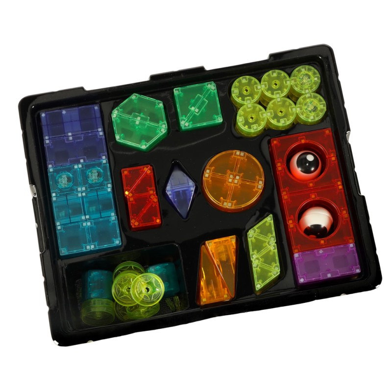 Klocki w różnych kształtach i kolorach dają dziecku możliwość tworzenia wielu konstrukcji – od prostych wież po bardziej skomplikowane figury 3D. Dzięki wbudowanym magnesom budowanie z klocków jest łatwe i przyjemne. Świecące elementy sprawiają, że każda konstrukcja wygląda imponująco, szczególnie w ciemności.