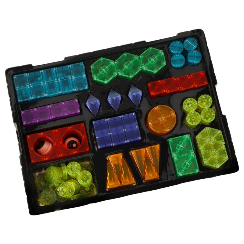 Klocki w różnych kształtach i kolorach dają dziecku możliwość tworzenia wielu konstrukcji – od prostych wież po bardziej skomplikowane figury 3D. Dzięki wbudowanym magnesom budowanie z klocków jest łatwe i przyjemne. Świecące elementy sprawiają, że każda konstrukcja wygląda imponująco, szczególnie w ciemności.