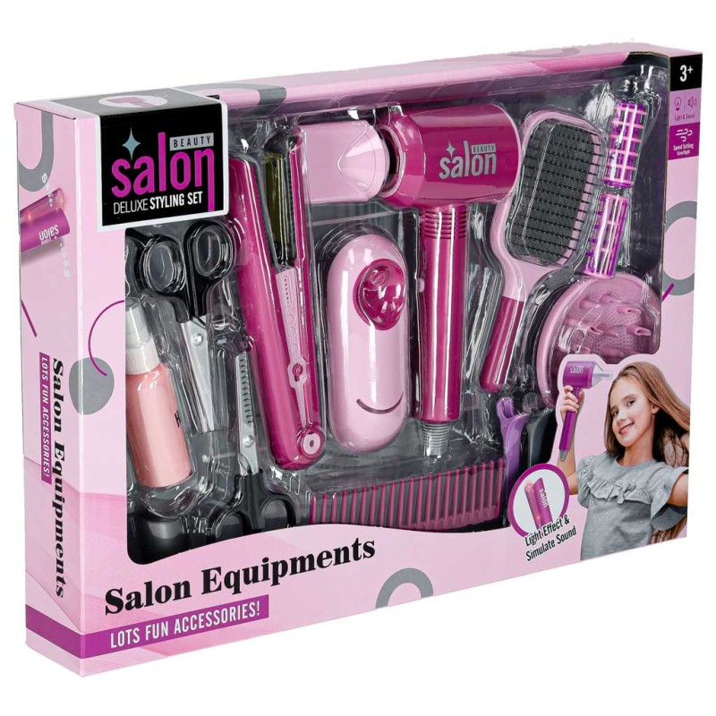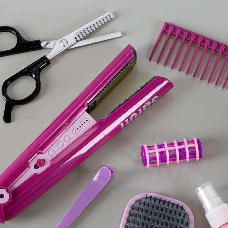 • Kompletny zestaw fryzjerski - wszystko, czego potrzeba do zabawy w stylistę! W jednym pudełku znajdziesz pełen arsenał narzędzi, które pozwolą dziecku stworzyć własny mini salon piękności