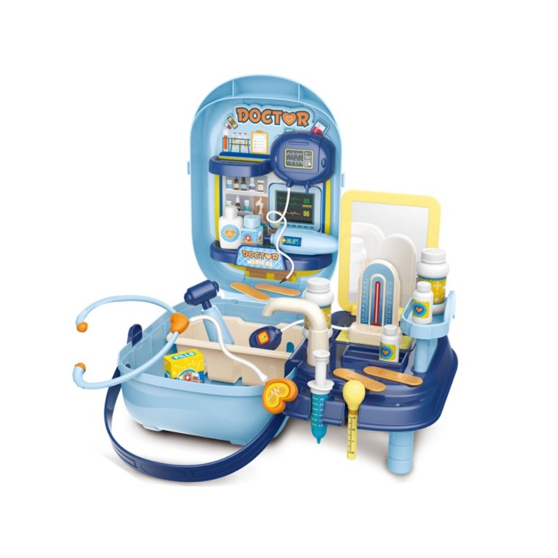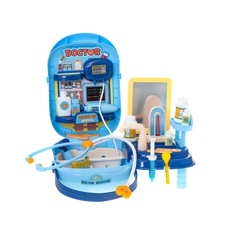 Zestaw pozwoli wczuć się rolę prawdziwego lekarza i zadbać o zdrowie misiów, lalek i domowników.