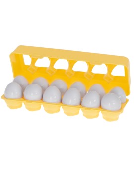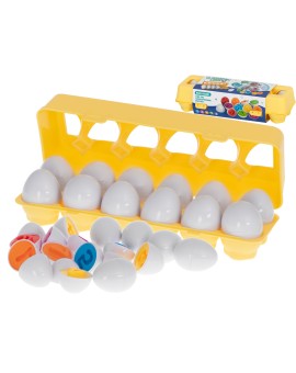 Rewelacyjna układanka sensoryczna. Skradnie serce każdego małego odkrywcy. Zabawa polega na dopasowaniu odpowiednich kształtów i kolorów figur geometrycznych, aby powstało całe jajko. W zestawie: 12 jajek. Wym. 1 jajka (obwód x wysokość): 15x7,5cm.