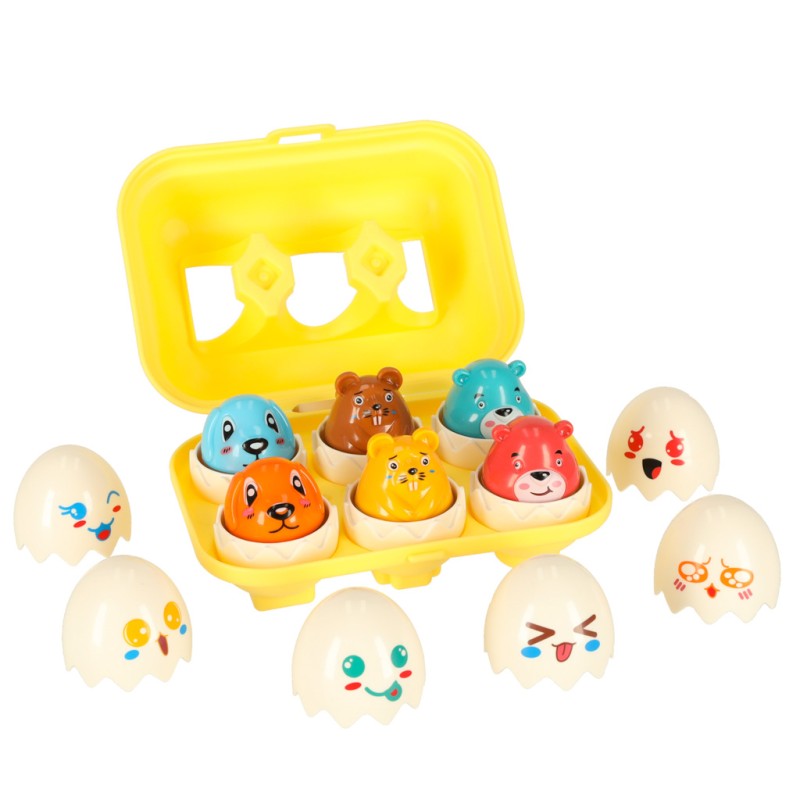 Odkryj radość, jaką daje zabawa z jajkami, które jednocześnie uczą i bawią! Nasza układanka edukacyjna sorter jajka to wyjątkowa zabawka edukacyjna, która wspiera rozwój umiejętności poznawczych dziecka już od 18 miesiąca życia. W kolorowym pudełku znajduje się zestaw edukacyjnych jajek, które trzeba połączyć parami - według koloru, kształtu i wzoru ukrytego od spodu. To nie wszystko - w środku każdego jajka czeka urocze zwierzątko, które czyni tę zabawę jeszcze ciekawszą!