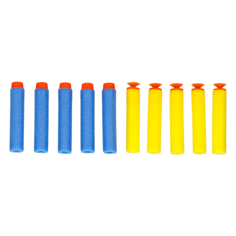 Zestaw zawiera 6 piankowych kulek oraz 10 piankowych nabojów, co zapewnia różnorodność w trakcie zabawy. Dziecko może wybrać rodzaj amunicji, który najlepiej pasuje do danego scenariusza zabawy.