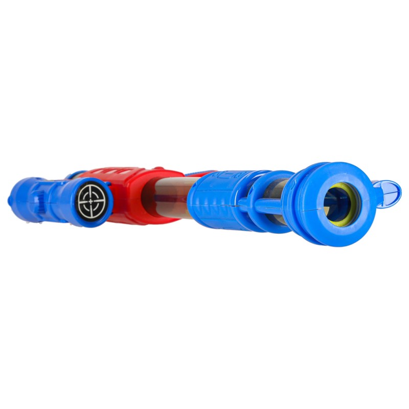 Jak dokładnie działa produkt? Należy załadować go piłeczką od przodu, ściągnąć kolbę, a następnie dynamicznie wypchnąć ją do przodu, aby strzelić do celu!