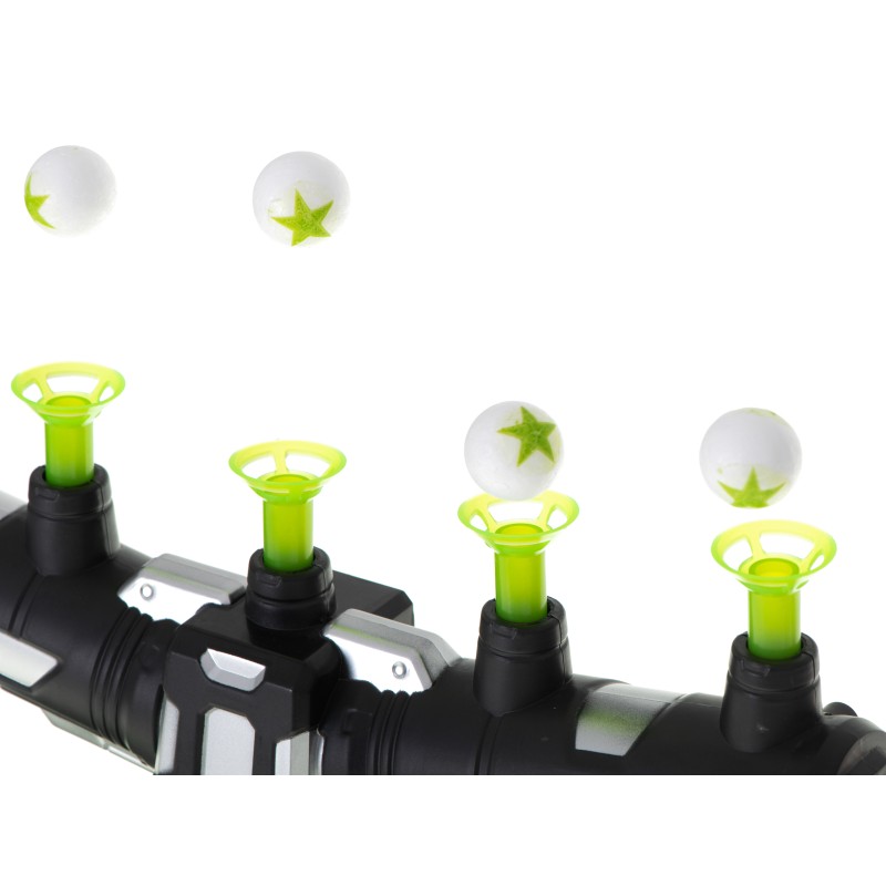 Ta interaktywna gra strzelecka da każdemu mnóstwo zabawy i radości. Trzeba wycelować w unoszące się piłeczki i je strącić za pomocą pistoletu na piankowe naboje. Strumień powietrza kieruje kulki do góry – obserwowanie poruszających się obiektów wspomaga koordynację ręka-oko oraz pozytywnie wpływa na koncentrację i uwagę. Fluorescencyjna tarcza ma dwa tryby natężenia strumienia powietrza, a także odtwarza muzykę, co pozwala realizować dowolne scenariusze rozgrywki.