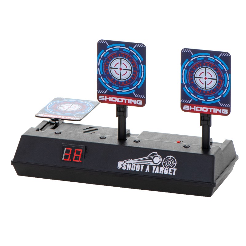 W tarczę można strzelać z pistoletów na piankowe strzałki czy kulki. Posiada ona efekty świetlne i dźwiękowe uatrakcyjniające zabawę. Po trafieniu możemy usłyszeć dźwięk tłuczonego szkła lub oklaski. Dodatkowo na tarczy został umieszczony dwucyfrowy licznik punktów. Każdy cel po trafieniu kładzie się do tyłu. Po zestrzeleniu trzech tarcz otrzymujemy 1 punkt, po czym wszystkie podnoszą się automatycznie do góry.