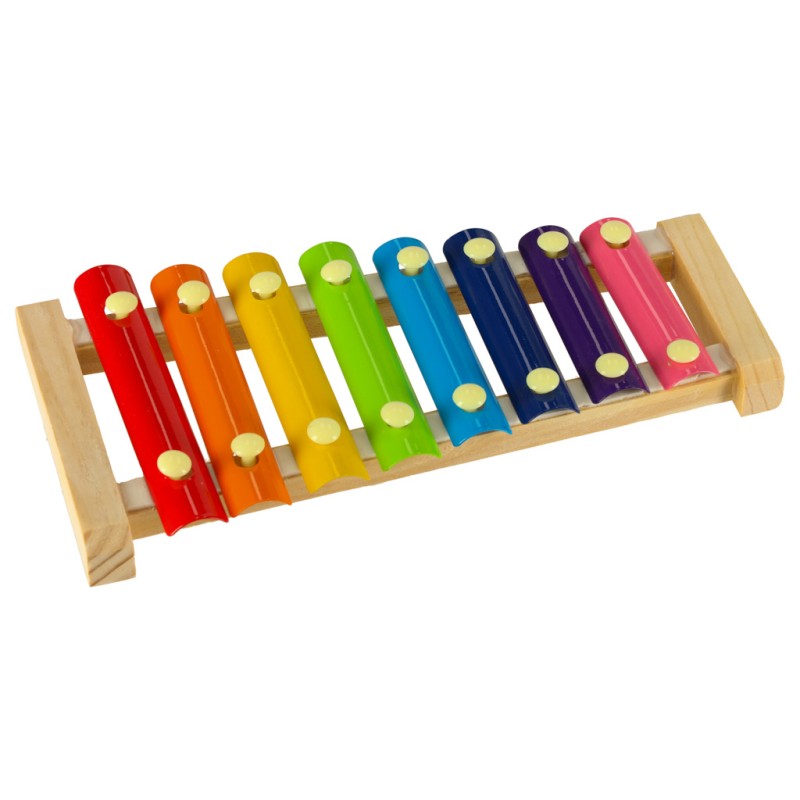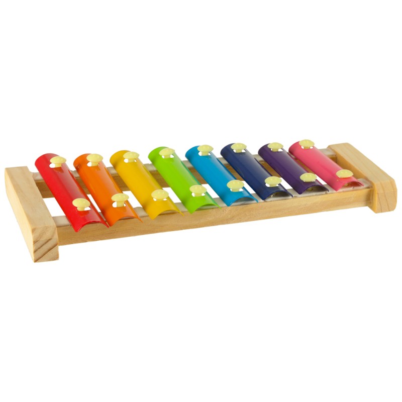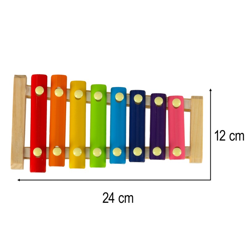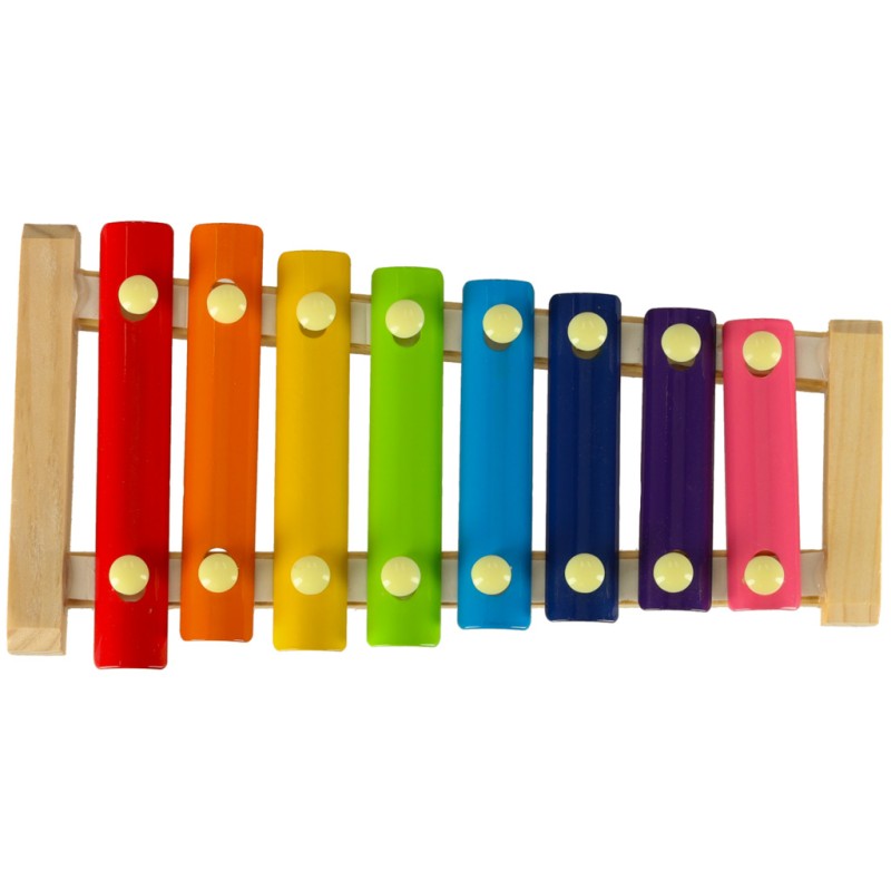 Kolorowe cymbałki muzyczne, z drewnianą oprawą, idealne dla początkującego muzyka.
