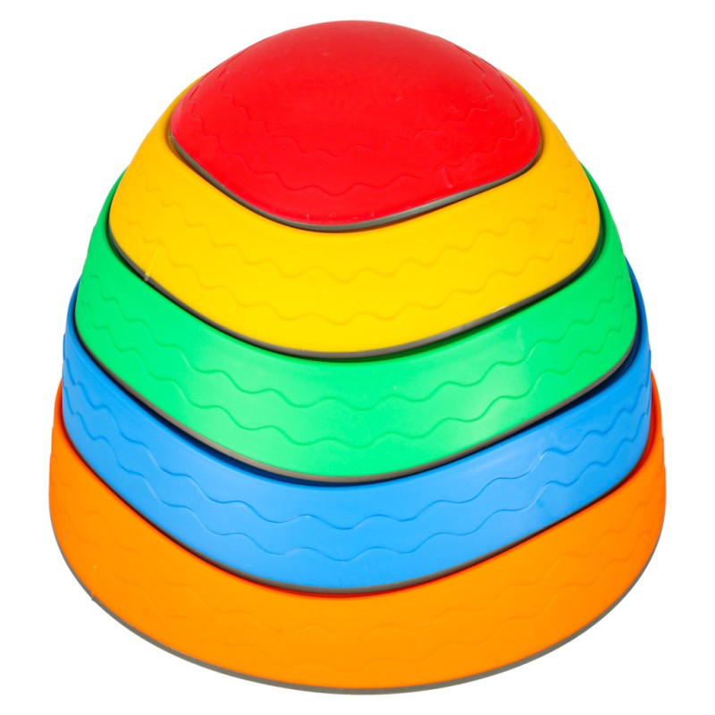 Zestaw został zaprojektowany z myślą o wspieraniu terapii SI (Integracji Sensorycznej), w której kluczowe znaczenie ma koordynacja ruchowa, różnorodność faktur i świadomość przestrzenna. Każdy z pięciu kamieni balansujących wyróżnia się nie tylko barwą, ale też kształtem i strukturą powierzchni, co stymuluje receptory czuciowe i pomaga dziecku rozpoznawać różnice dotykowe.