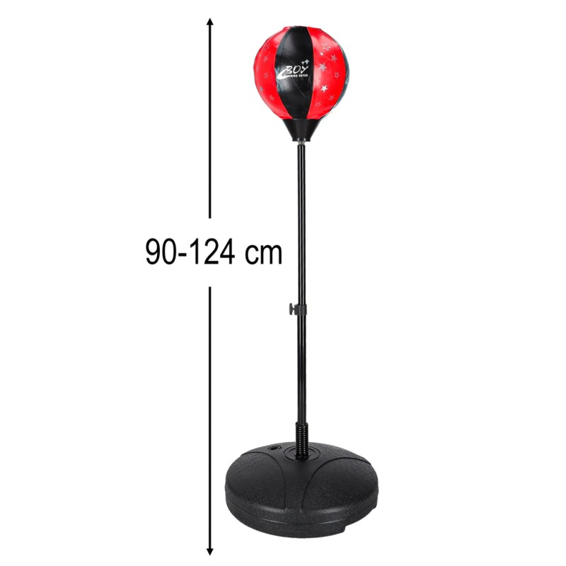 Gruszka zamocowana jest na tyczce, ta zaś sprężyną połączona jest z podstawą uniemożliwiającą przesuniecie się sprzętu po uderzeniu. Gruszka do boksowania jest pompowana. Świetnie poprawia motorykę i szybkość dziecka, nie obciążając przy tym kręgosłupa. Całość ma wysokość 124 cm.
