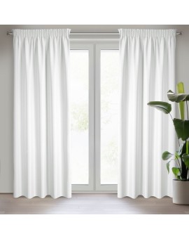 Piękna, jednokolorowa zasłona z miękkiej tkaniny o matowym wykończeniu i satynowym splocie. Uniwersalna dekoracja do każdego wnętrza. Łatwa w prasowaniu. szerokość: 140 cm, długość: 270 cm, kolor: biały, Gramatura: 140 GSM, Skład: 100% poliester
