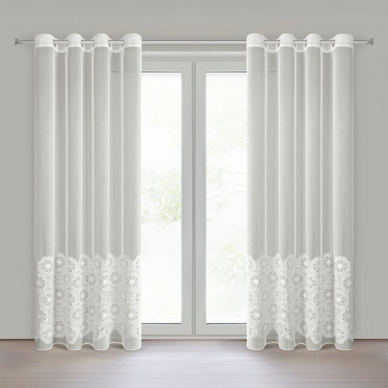 Firana gotowa zdobiona aplikacją szerokość: 140 cm, długość: 250 cm, kolor: biały, Skład: 100% poliester