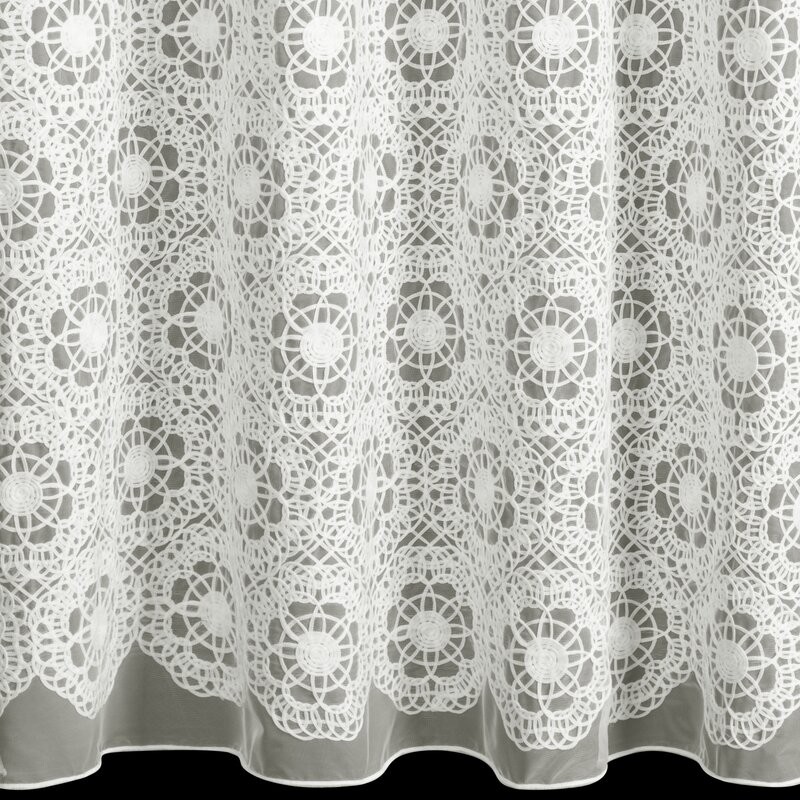 Firana gotowa z siatki z aplikacją w kształcie róż szerokość: 140 cm, długość: 270 cm, kolor: biały, Gramatura: 50 GSM, Skład: 100% poliester