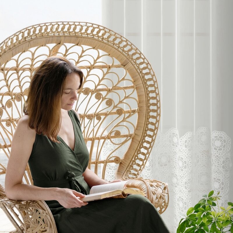 Firana uszyta z miękkiej tkaniny Peru zachwyca subtelnym zdobieniem w dolnej części w postaci mandali. Przelotki ułatwiają zawieszenie, a równomiernie układające się fałdy dodają wnętrzu elegancji i harmonii. Idealna do salonu, sypialni lub jadalni, wprowadzając wyjątkowy, artystyczny akcent do każdego pomieszczenia.
