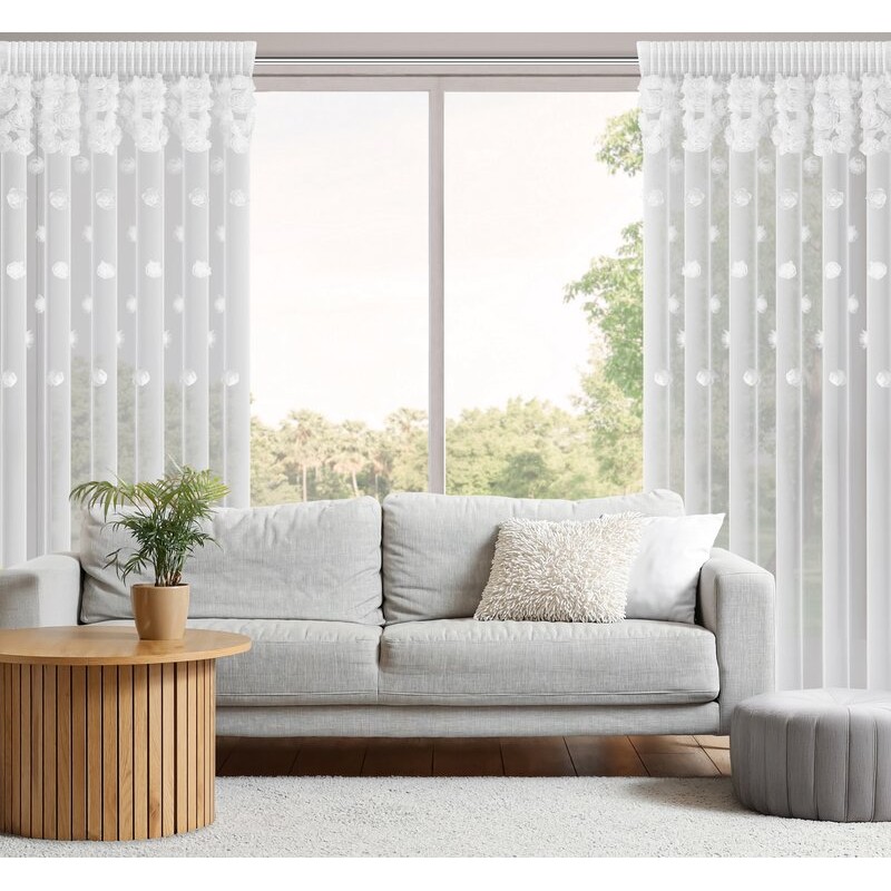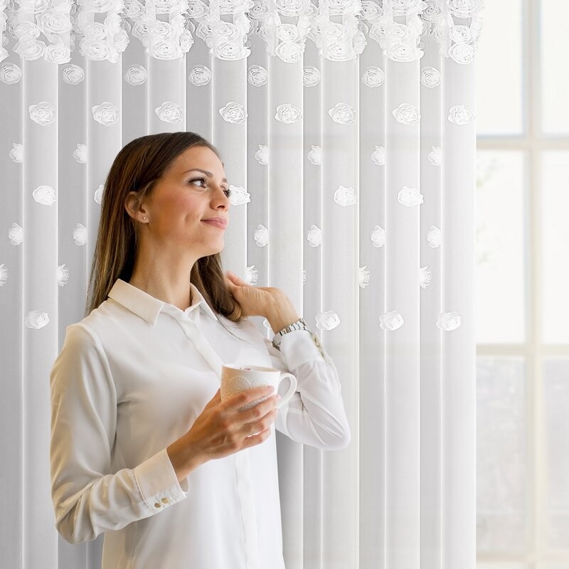Firana gotowa AGATA zdobiona szenilowymi pasami