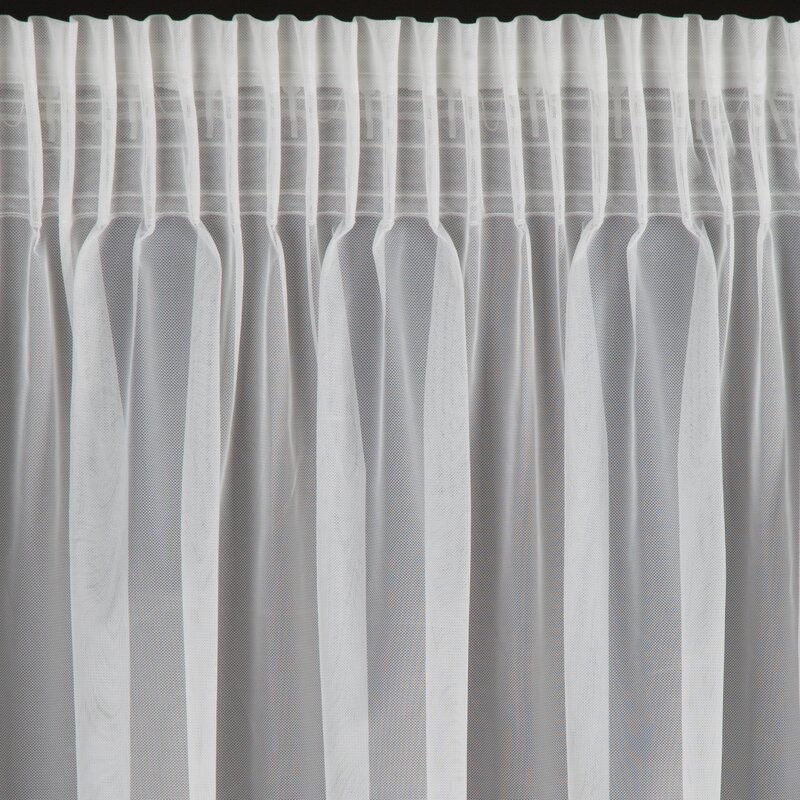 Firana biała z drobnej siateczki zdobiona plisowaniem i koronką 140x250 cm przelotka - HANA