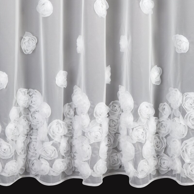 Wprowadź do swojego domu nutę romantyzmu i przytulności dzięki firanie DIANA. Delikatna siateczka subtelnie filtruje światło, tworząc w pomieszczeniu miękką, naturalną poświatę. Dolną część firany zdobią trójwymiarowe róże 3D, które przypominają o pięknie natury i kobiecej subtelności.