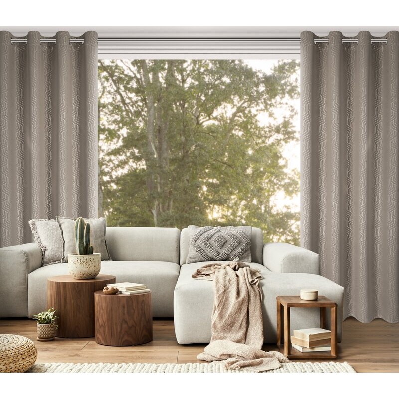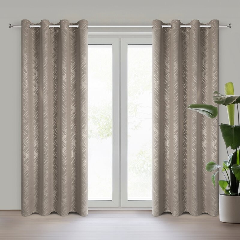 Zasłona gotowa ELISE z tkaniny zaciemniającej typu dimout z błyszczącym nadrukiem