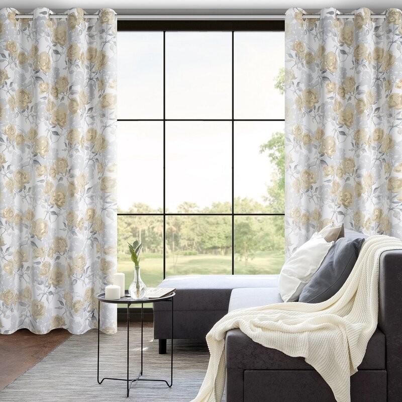 Zasłona gotowa ELISE z tkaniny zaciemniającej typu dimout z błyszczącym nadrukiem