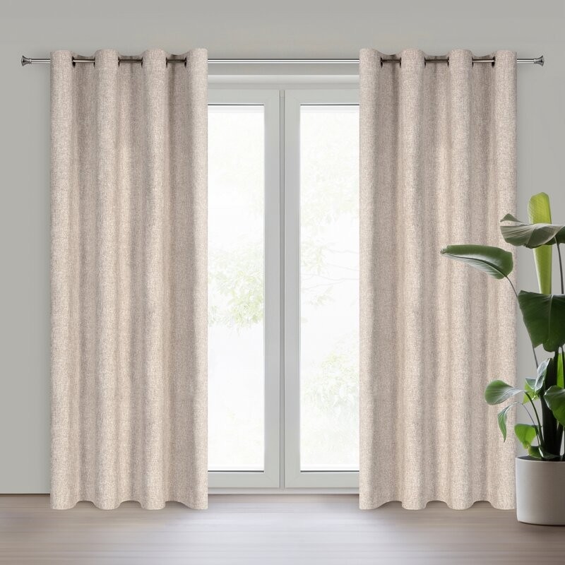 Zasłona gotowa w stylu eko z efektem melanżu szerokość: 140 cm, długość: 270 cm, kolor: beżowy, Gramatura: 110 GSM, Skład: 100% poliester