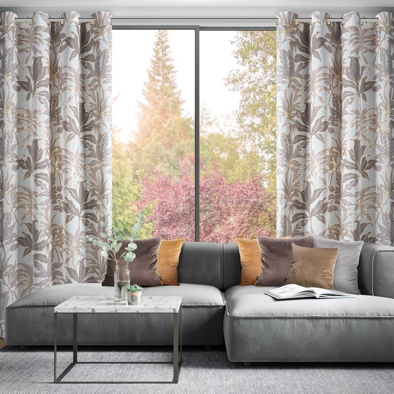Zasłona LILIA w stylu eko z malarskim nadrukiem barwnych liści