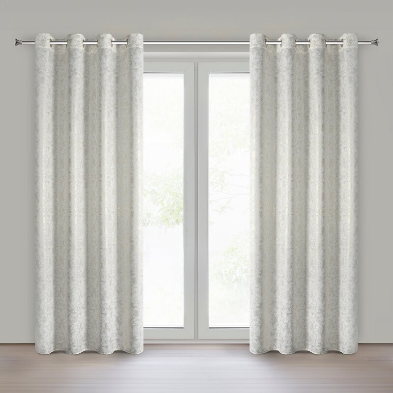 Zasłona gotowa w stylu eko z błyszczącym nadrukiem szerokość: 140 cm, długość: 250 cm, kolor: srebrny, Gramatura: 270 GSM, Skład: 100% poliester