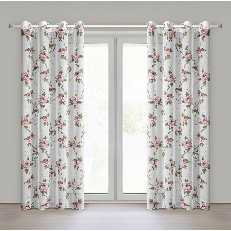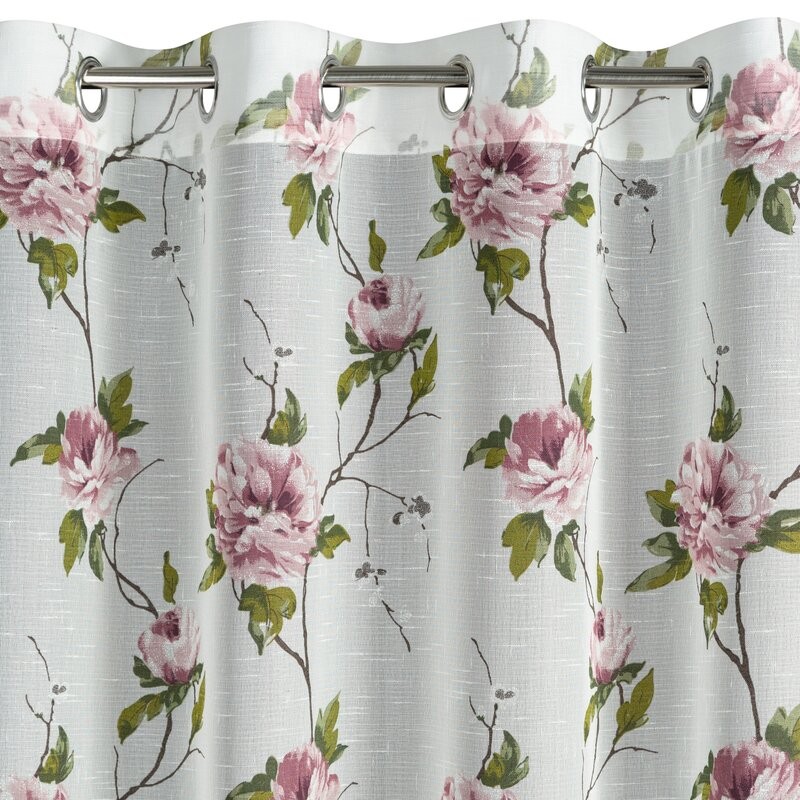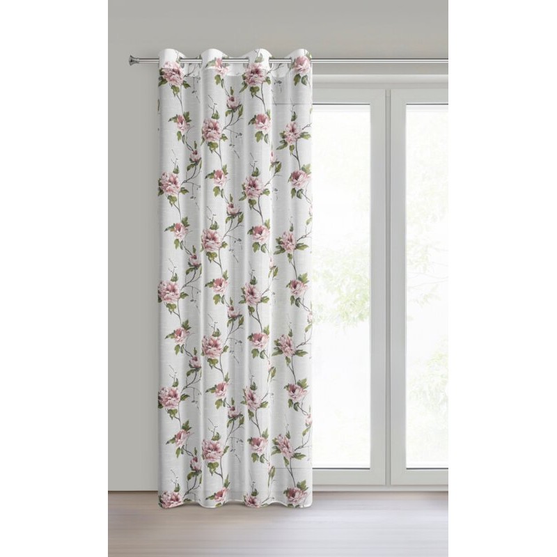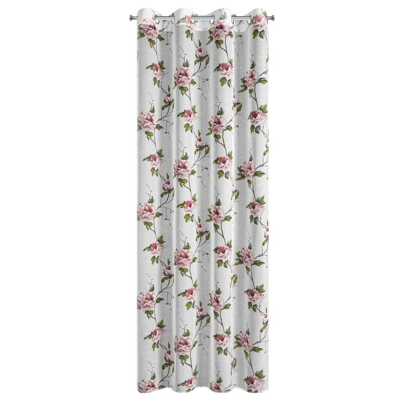 Zasłona gotowa z nadrukiem kwiatowym szerokość: 140 cm, długość: 240 cm, kolor: biały, Gramatura: 75 GSM, Skład: 100% poliester
