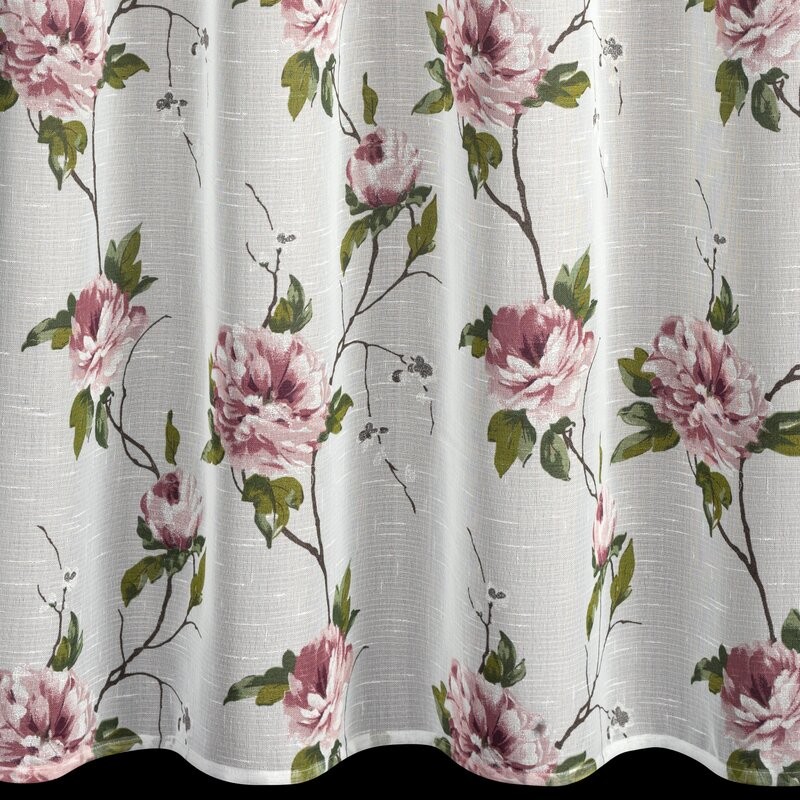 Firana gotowa FELINA z etaminy zdobiona gumowym nadrukiem kwiatów