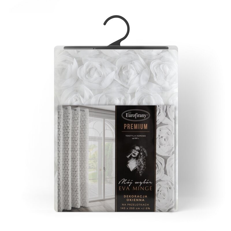 Zasłona biała z siateczki zdobiona różami 3D 140x270 cm taśma - ROSES1 Eva Minge