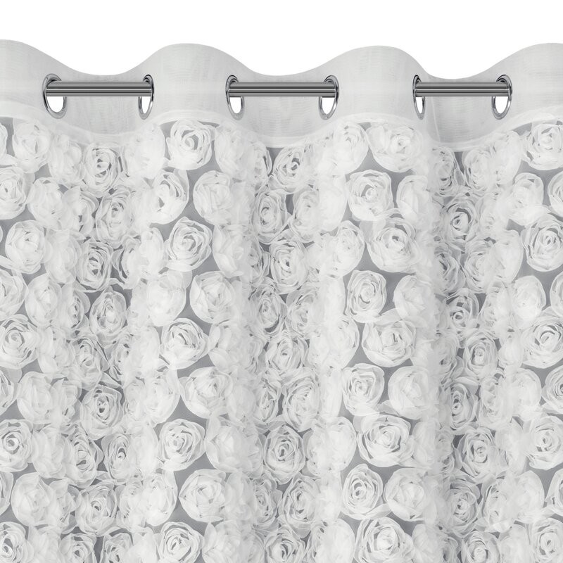 Zasłona gotowa z siatki z różami po całości szerokość: 140 cm, długość: 270 cm, kolor: biały, Gramatura: 50 GSM, Skład: 100% poliester