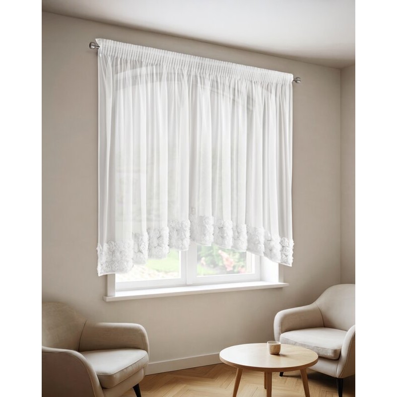 Zasłona gotowa z siatki z różami po całości szerokość: 140 cm, długość: 270 cm, kolor: biały, Gramatura: 50 GSM, Skład: 100% poliester