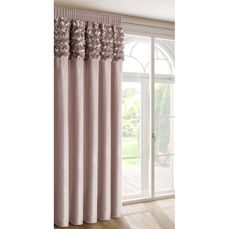 Zasłona gotowa welwetowa z 6 pasami ozdobnych róż szerokość: 140 cm, długość: 270 cm, kolor: beżowy, Gramatura: 200 GSM, Skład: 100% poliester