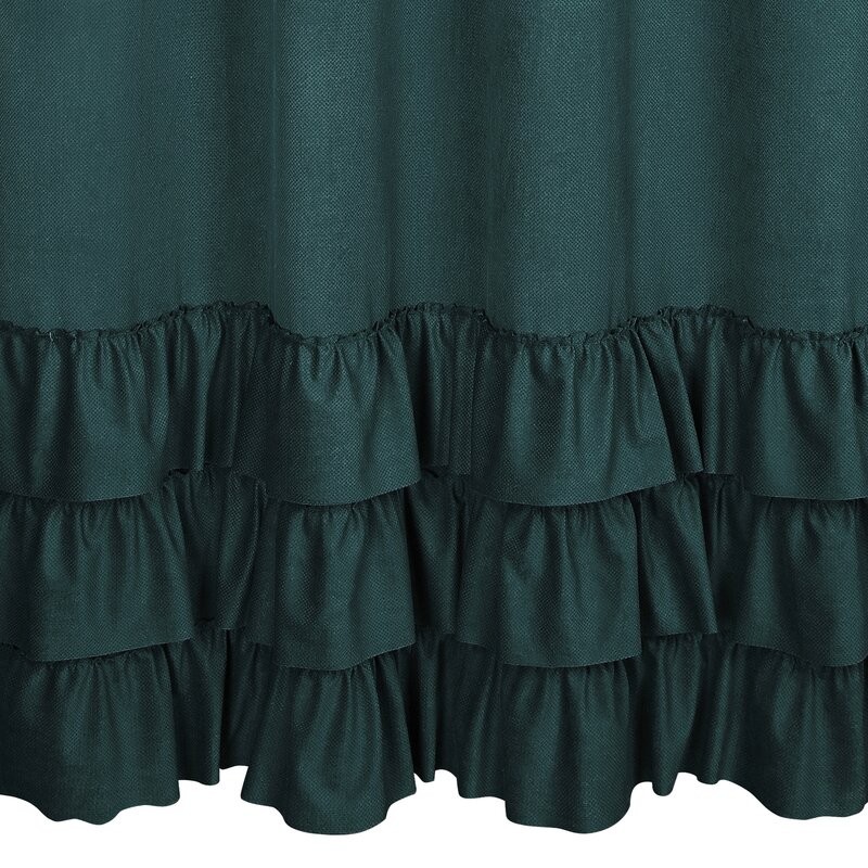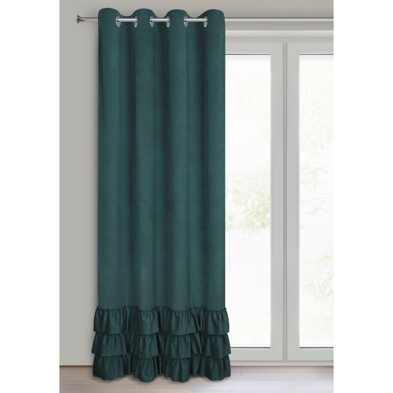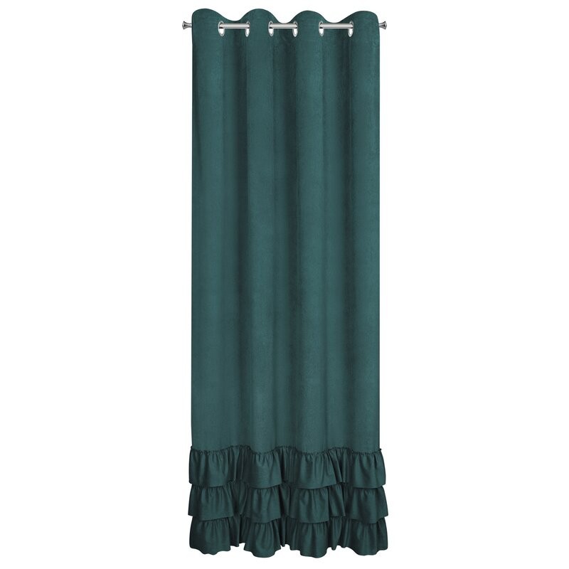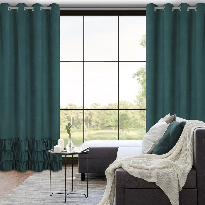 Zasłona ciemnoturkusowa z welwetu zdobiona trzema subtelnymi falbanami 140x250 cm przelotka MEGI