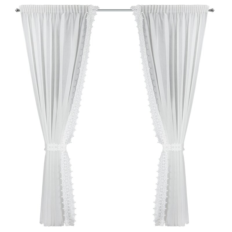 Komplet firan gotowych zdobionych obszywką, z troczkiem szerokość: 140 cm, długość: 270 cm, kolor: biały, Gramatura: 70 GSM, Skład: 100% poliester